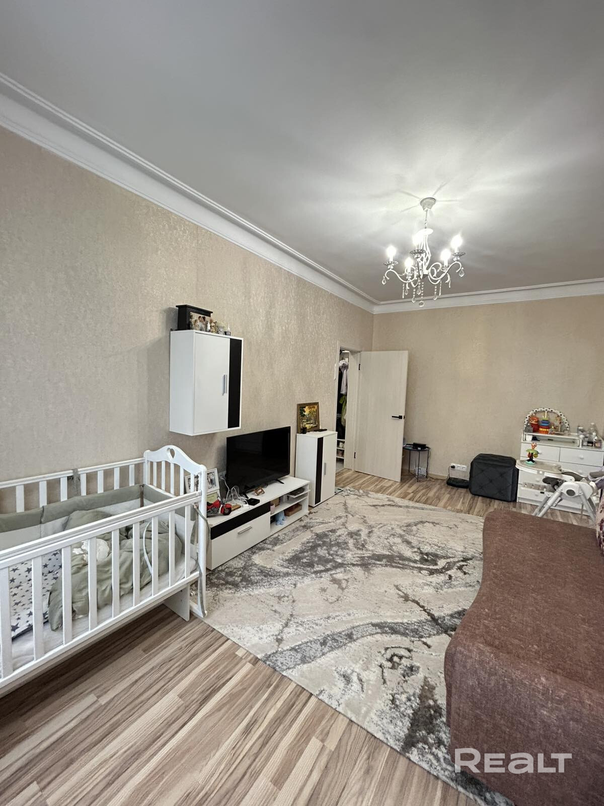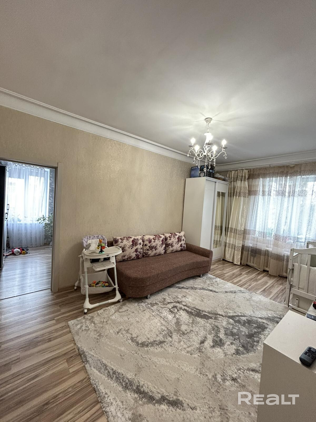В квартире в 2022 году выполнен свежий ремонт, окна ПВХ, входная дверь металлическая, заменены трубы, а так же частично заменена проводка, новый ламинат и плитка в с/у, выровнены стены, свежие обои, выровнены и покрашены потолки, межкомнатнатные двери современного образца. Дом после капитального ремонта! Из окон квартиры прекрасный вид на гостиницу "Бобруйск" В доме на 1 этаже аптека и парикмахерская. В шаговой доступности остановки транспорта, кинотеатр "Товарищ", магазины, дет. сад и Гимназия