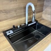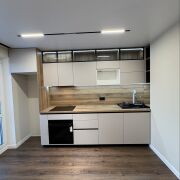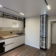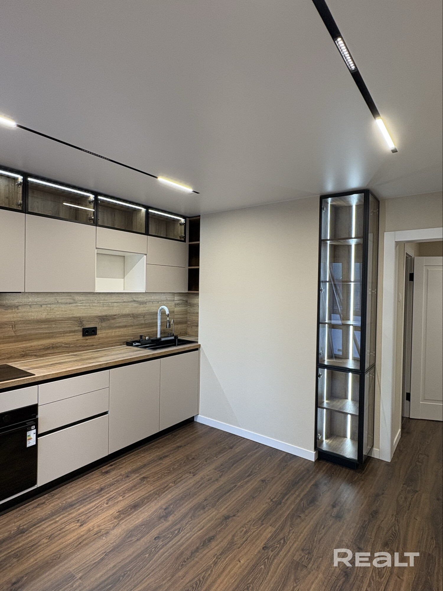 Продаю тёплую и светлую квартиру в новостройке, готовую к проживанию. Просторная кухня с выходом на широкую лоджию с панорамными окнами. Кухонная мебель изготовлена на идеальной геометрии форм, монохромной гамме и тактильных материалах. Кухня до самого потолка, никаких мёртвых зон наверху. Многоуровневая система хранения вместит всю посуду, запасы и технику. Порядок гарантирован! Верхние шкафы со стеклянным вставками и изящные подсветкой создают ощущения простора и выглядят как стильный элемент
