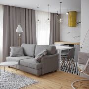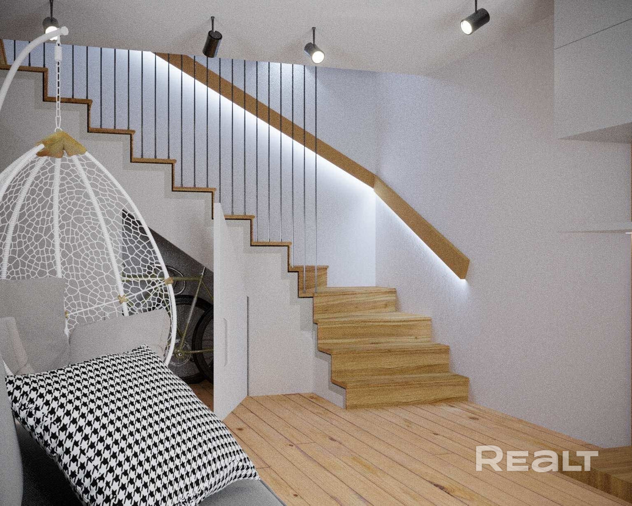 На первом этаже расположена просторная кухня-гостиная и туалет, на втором этаже - 2 спальни, совместный санузел и гардеробная. Особого внимания заслуживают две лоджии, с которых открываются поистине шикарные виды на город.