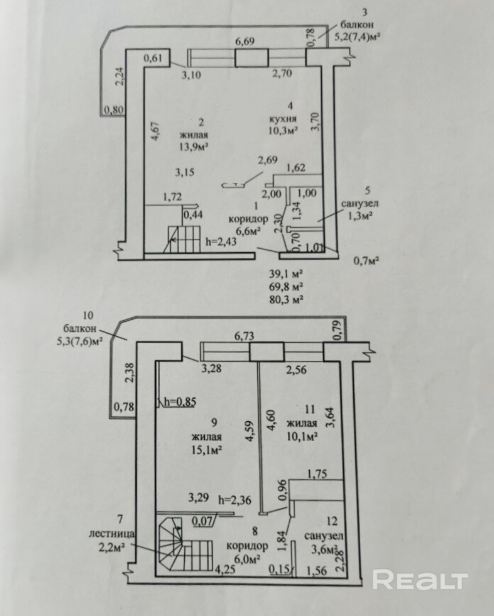 Общая площадь (по СНБ) 80,3 м. кв.