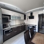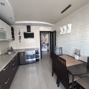 • Окна и лоджия пвх с тройным остеклением, на полу ламинат, двери массив , потолки комбинированные , сан узлы в плитке .