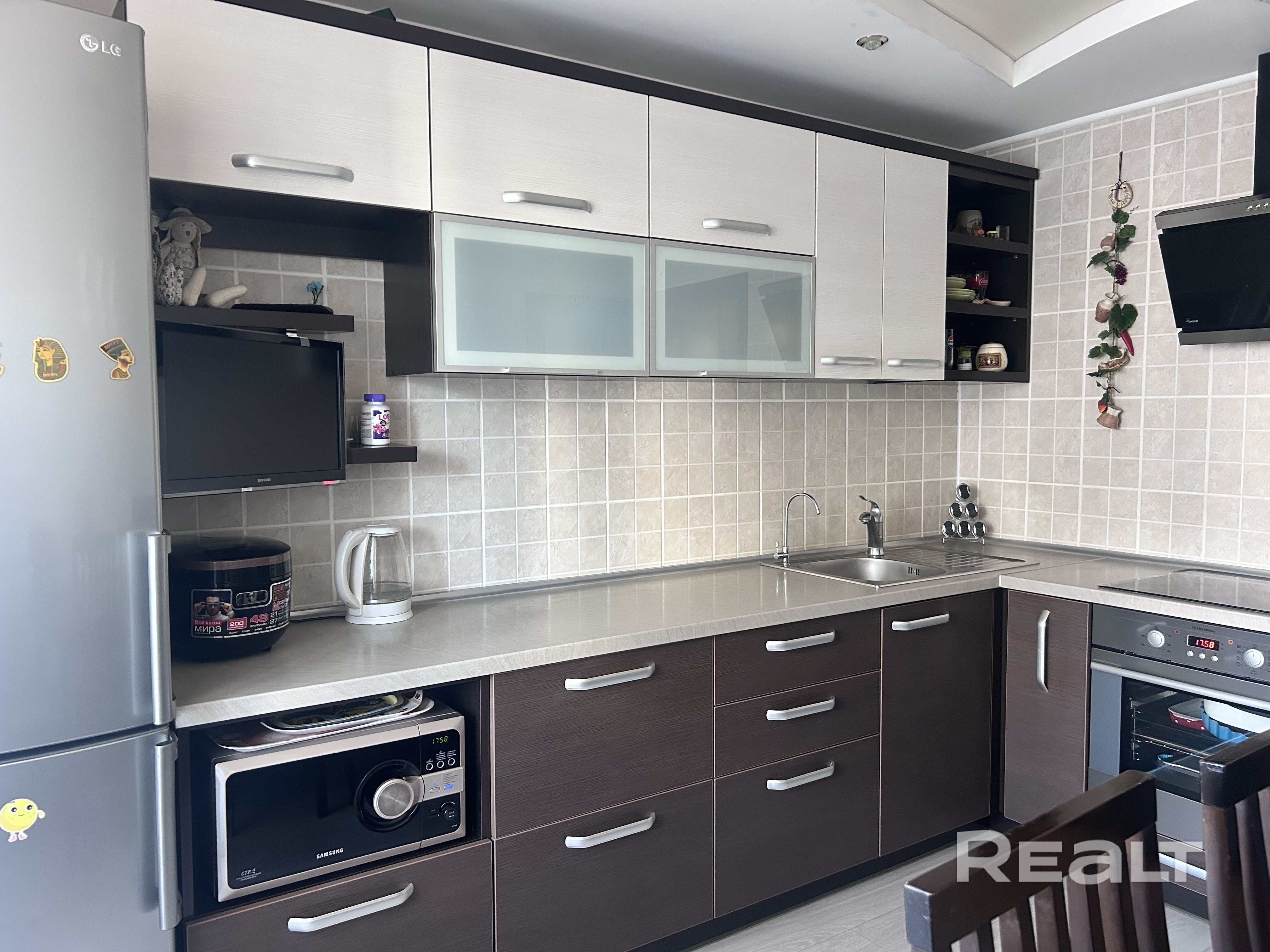 • При продаже остается : кухонный гарнитур с техникой Electrolux, встроенный шкаф купе в прихожей , мебель в ванной .