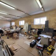 Производственный блок: помещения свободной планировки с высокими потолками (3.1 м), подходят под столярку, склад, сервисный центр или производство.