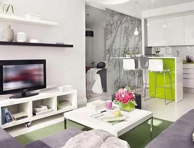 Очевидно, что разделения пространства в любом случае не избежать. В гостиной — отдыхают, на кухне — готовят. Отсюда следует необходимость визуально подчеркнуть каждую зону. Например, с помощью опорной стены, различных арок между зонами гостиной и кухни, раздвижных перегородок, ширм, освещения, элементов декора. Можно использовать и вышеупомянутые элементы двойного назначения, и даже барную стойку.