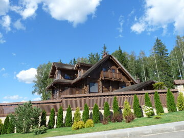 На тех земельных участках, которые на сегодняшний день еще остаются свободными, строительство коттеджей также будет вестись по индивидуальным проектам. По крайней мере, как рассказал координатор проекта Павел Протасовский, застройщик в дальнейшем не планирует вести строительство коттеджей по типовым проектам. Хотя трехуровневые комфортабельные коттеджи из клееного бруса с монолитным цокольным этажом, облицованным диким камнем, удачно подчеркивают живописный ландшафт местности и не оставят равнодушными самых изысканных покупателей.