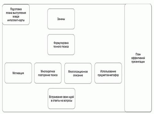 — В первую очередь мы изучаем и начинаем использовать интеллект-карты (MindMap) — этот навык прекрасно помогает как при подготовке, так и во время выступления. Вы никогда ничего не забудете и не перепутаете, если пользуетесь интеллект-картами.