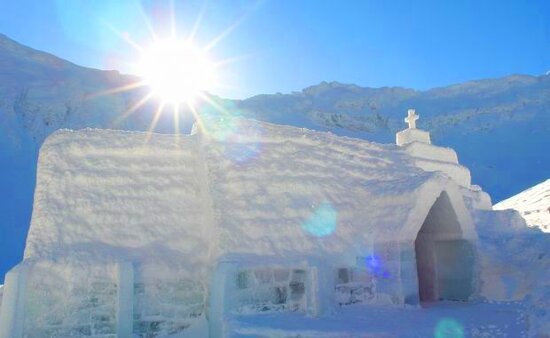 Эта гостиница была открыта в 2005 году. Как и у многих других, в её составе имеется Ледяная церковь. Благодаря чему, туристы могут обвенчаться под снежными сводами необычного строения, на высоте двух тысяч метров над уровнем моря. А после торжественной церемонии провести романтический вечер в ледяных апартаментах замка. Такой медовый месяц надолго запомнится молодоженам.