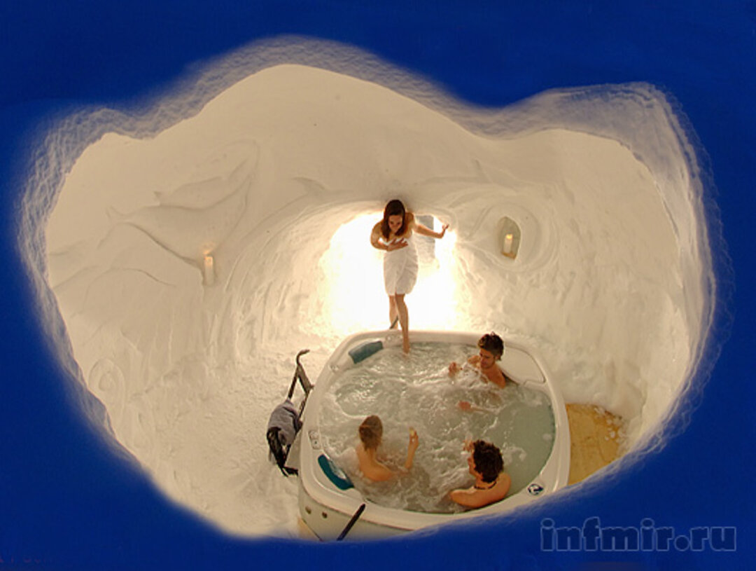 Целые деревеньки иглу (домики из снега и льда) возводятся накануне открытия лыжного сезона на популярных курортах Швейцарии, Германии и, с недавних пор, Франции.