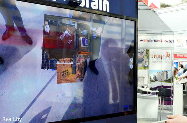 Можно уверенно сказать, что именно они были той частью выставки, которая поражала воображение посетителей. Ведь основной «фишкой» стенда были огромные плазменные экраны, работающие с посетителями в режиме полного интерактива. При помощи первого экрана гости выставки могли держать на ладони объемный макет полноценного дома. Второй экран служил настоящим порталом в виртуальную реальность, где люди управляли изображением при помощи собственных действий.