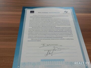 В символическом послании потомкам говорится: «Международный гостиничный бренд NOVOTEL известен в мире высоким качеством и эксклюзивным уровнем стандартов предоставляемых услуг. Мы надеемся, что новый, первый для сети ACCOR в Республике Беларусь, гостиничный комплекс NOVOTEL MINSK MAYAKOVSKAYA станет лучшим в своем классе успешным коммерческим предприятием. Мы рассчитываем, что благодаря этому проекту вы сможете пользоваться самыми современными технологиями и дальше развивать новые возможности в национальной индустрии гостеприимства».