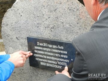 3564 323 мая состоялась церемония закладки капсулы с посланием потомкам в памятный знак на месте строительства многофункционального гостиничного комплекса NOVOTEL MINSK MAYAKOVSKAYA.