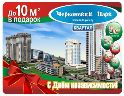 Специально ко Дню независимости Республики Беларусь в одном из главных инвестиционных проектов города ─ квартале «Червенский Парк» действует акция"Квадратные метры в подарок».
