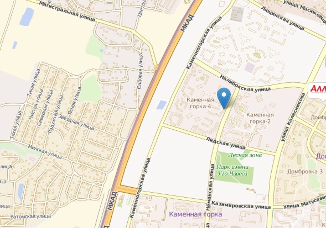 Новый торгово-развлекательный комплекс расположен в квартале улиц Лидской — Неманской — Налибокской, в самом сердце высокоплотной многоэтажной застройки Каменная Горка — 4, в пределах пешеходной доступности от любой точки микрорайонов Каменная Горка — 2,3,4 и станции метро «Каменная Горка». Многоуровневый ТРЦ находится на отдельном земельном участке, располагает собственной системой жизнеобеспечения и парковкой. Он имеет удобный подъезд, размещается вблизи регулируемого пешеходного перехода и разворотного разрыва на улице Неманской.