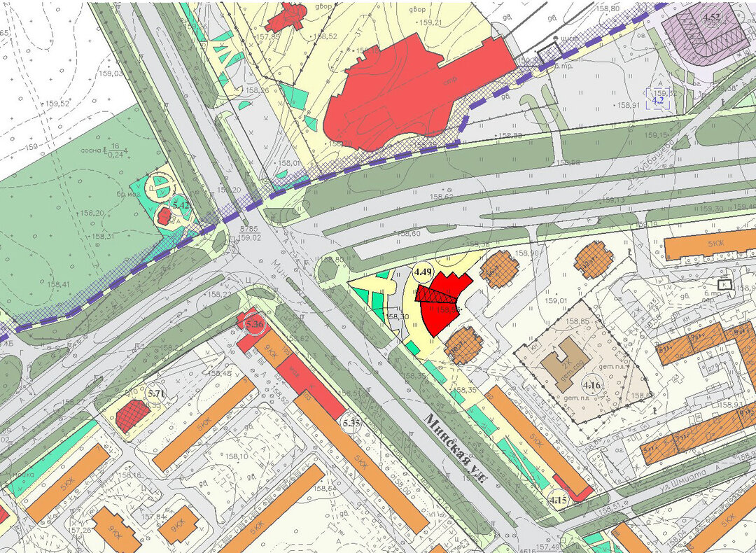 4093Компания-застройщик ООО «БигТаунСтрой» реализует инвестиционный проект по строительству объектов торговли и общественного питания с организацией быстрого питания для автомобилистов в центре г.Бобруйска на пересечении ул.Минская и пр-та Георгиевский.