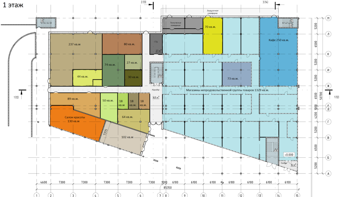2.Торговая зона состоит из следующих помещений (общая площадь 1580м2):