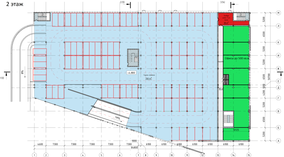 - многоуровневая гараж-стоянка на 300 м/мест, из них 200м/мест индивидуальные закрытые боксы для хранения автотранспорта.