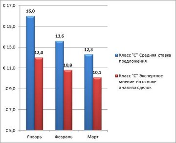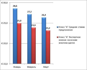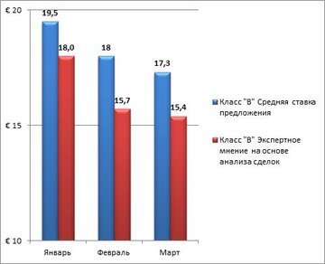 Больше всего с января по март снизились арендные ставки на объекты C-класса — на 30%. Сейчас компании в среднем платят за аренду помещений € 10,1 с НДС за кв.м. В этом сегменте наблюдается жесткая конкуренция, а сами объекты уже далеко не всегда соответствуют ожиданиям арендатора. Чаще всего им принимается решение в пользу бизнес-центров класса «B». То есть происходит перераспределение спроса в пользу более качественных объектов.