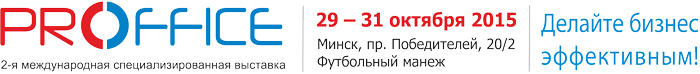 Приглашаем вас присоединиться к знаковому событию рынка офисной индустрии и услуг для бизнеса: 2-й международной специализированной выставке ProOffice, которая пройдет с 29 по 31 октября 2015 г. в Минске (пр. Победителей, 20/2, Футбольный манеж). ProOffice — расширенный формат специализированной выставки «Современный офис», прошедшей в 2014 году. Это единственное в Беларуси мероприятие, позволяющее продемонстрировать широкий спектр офисного оборудования и решений для офиса. В этом году ProOffice предлагает различные формы участия по антикризисным ценам.