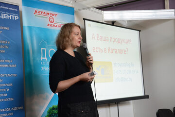 Первой взяла слово заместитель начальника отдела информационно-издательских услуг РУП «Белстройцентр» Наталья Лиско. Она выступила с докладом на тему «Электронный каталог стройматериалов как инструмент продвижения продукции предприятия».