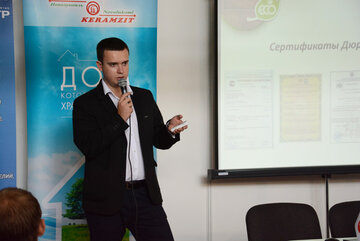Из выступления аудитория узнала о преимуществах новой для белорусского рынка экологичной системы несъемной опалубки Дюрисол. Она изготовлена в виде блоков и применяется для строительства коттеджей и мало домов.