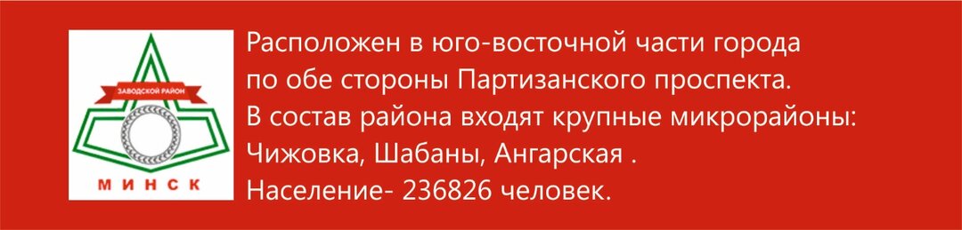 4948Еще в конце девяностых остроумные жители Заводского района столицы подшучивали над невысоким рейтингом своего места жительства в духе «мало кто знает, что в Заводском районе есть библиотека», а автобусный маршрут № 9 «ДС Шабаны — ДС Серебрянка» называли «из огня — да в полымя». Прошли годы, и «печальное прошлое» осталось далеко за кадром. Сегодня действительность района намного жизнерадостнее: это комфортное для проживания место со своими неоспоримыми плюсами, способствующими покупке недвижимости именно здесь.