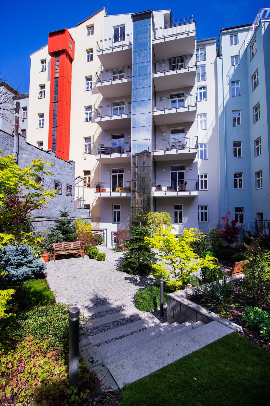 В Праге редко встречается высотное строительство. Большинство проектов представляет собой комплексы из 3−6 домов по 1−2 подъезда высотой до 6 этажей. Обязательным является устройство парковок с расчетом 0,5 парковки на студию, 1 парковка — на 2−3-комнатную квартиру, 2 парковки — на 4-комнатную квартиру. Девелоперы стараются озеленять дворы, устраивать детские площадки.