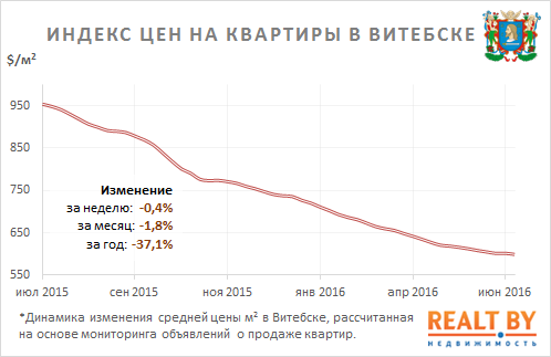 781За неделю с 20 по 27 июня 2016 года информационно-аналитическим центром Realt.by были отмечены следующие изменения на вторичном рынке жилья города Витебска: