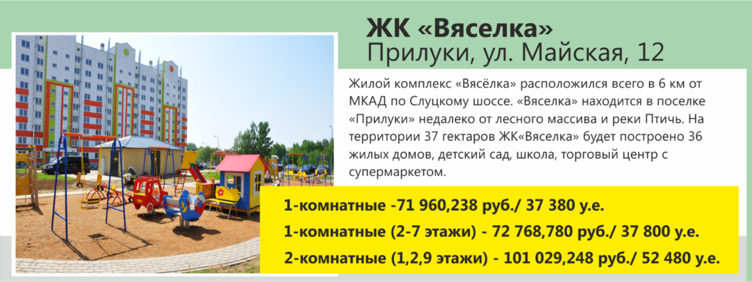 — Хорошие новости и для тех, кто хотел бы приобрести квартиру без истории — от застройщика. В проектах «Липень» и «Вяселка» — участниках программы «Переезжаем в новостройку» — имеются в наличии одно- и двухкомнатные квартиры по цене от $ 37 380.