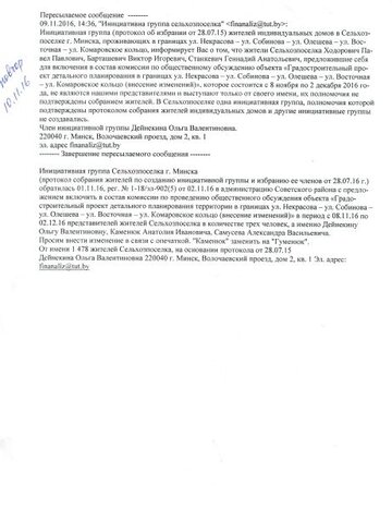 — Члены инициативной группы должны отстаивать интересы жителей, а не корыстные интересы застройщиков. Мы уже подали жалобу на имя главы администрации на действия должностных лиц, нарушивших законодательство по части обращения граждан, но с ответом они не торопятся. Аналогичная жалоба направлена в Мингорисполком, который перенаправил ее обратно в администрацию района.
