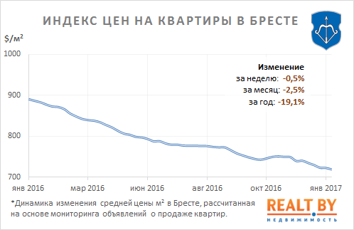Мониторинг цен предложения квартир в Бресте за 2−9 января 2017 года