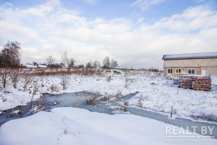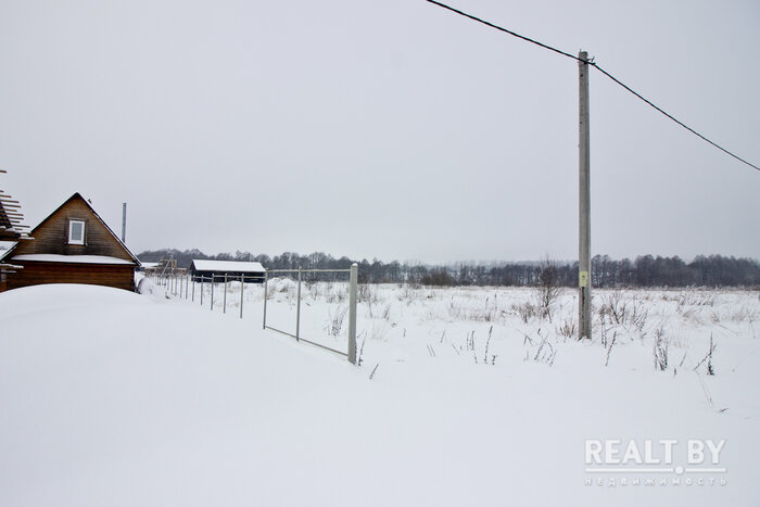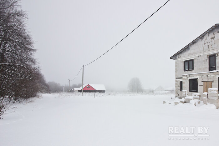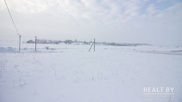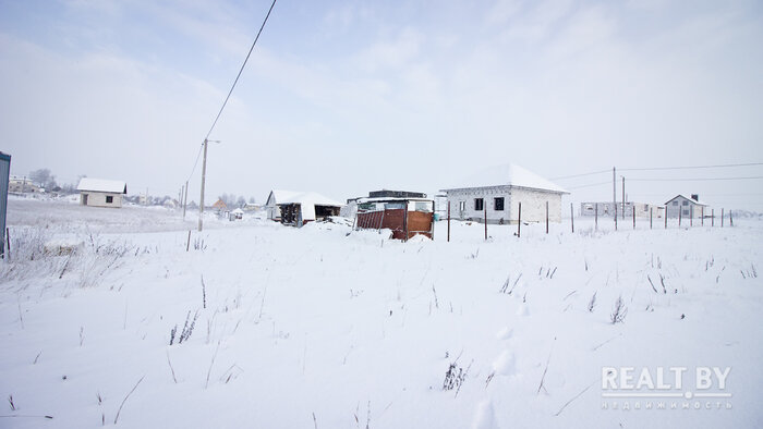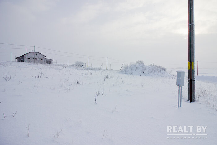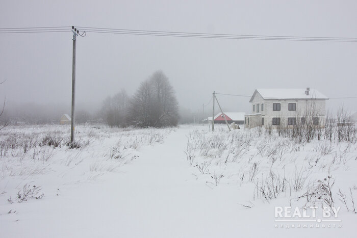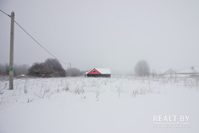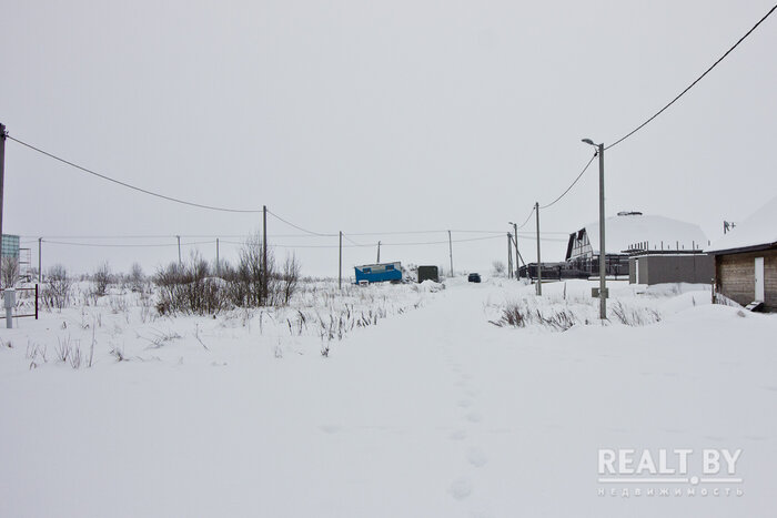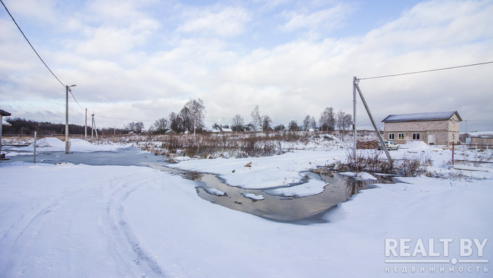 Участок, выставленный на торги под номером два, располагается чуть дальше, на окраине населенного пункта. Ближайший сосед строится, напротив выделено еще несколько участков, о которых мы писали ранее. С момента нашего прошлого посещения населенного пункта на площадке ничего не изменилось. Как и ранее, участки буквально затоплены. Вода скрыта под снегом, но под ногами слышится отчетливый хруст льда. Есть предположение, что здесь произошло какое-то ЧП либо территория настолько низкая, что вода на участках будет стоять круглый год. Как и в предыдущем случае, из коммуникаций заявлено лишь электричество. Подъезд — накатанная дорога.