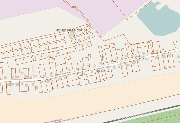Участок выделен в квартале новой коттеджной застройки. Сосед справа строится, площадка слева пока пустует. Подъездные пути — накатанная дорога. Из коммуникаций есть только электричество. Территория участка ровная, удобная для строительства. Из минусов — приближенность к железнодорожным путям и вид на производство.
