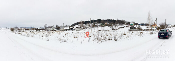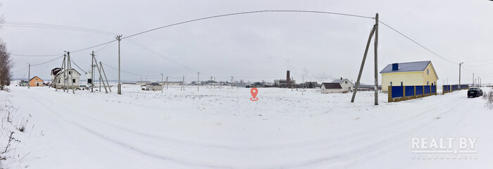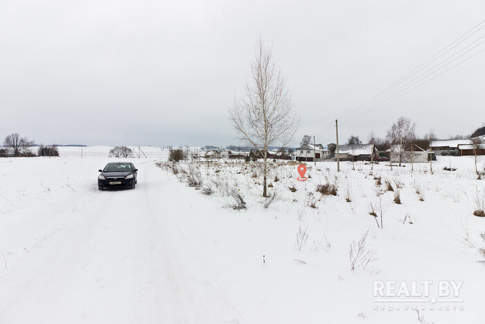 Участок № 4 выделен на въезде в поселок, недалеко от магазина «Купалiнка» и во второй линии от основной дороги. Соседние земельные наделы пока пустуют, но они также разыгрываются через аукцион. Ранее эти территории использовались в сельхозцелях — площадки вспаханы и освоены. Почти к самым участкам ведет асфальтированная дорога, в метрах пятистах проходит трасса к национальному аэропорту (М2). Территория участка ровная, удобная для возведения дома, чуть под склоном. Жилой сектор находится рядом, но отгорожен забором. Из коммуникаций здесь имеются электричество и газ. Рядом небольшое сельхозстроение.
