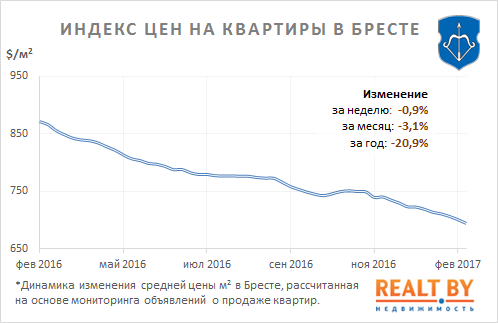 Мониторинг цен предложения квартир в Бресте за 6−13 февраля 2017 года