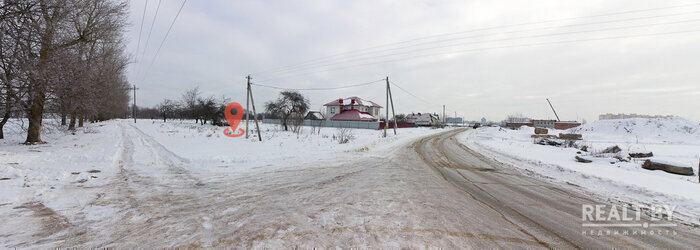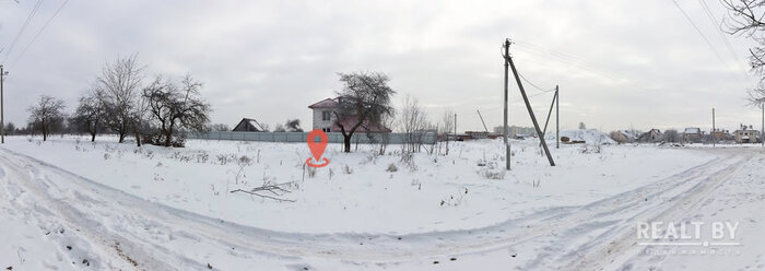 Участок угловой, выделен на окраине Сеницы, всего в 2,5 км от МКАД. Ближайший сосед строится, рядом виднеются склады и несколько небольших производств. Напротив участка поле, от него земельный надел отделяет небольшая лесополоса. Подъезд — асфальтированная дорога. Рядом имеются все необходимые коммуникации: электричество, газ и водопровод. Территория земельного надела ровная, удобная для строительства.