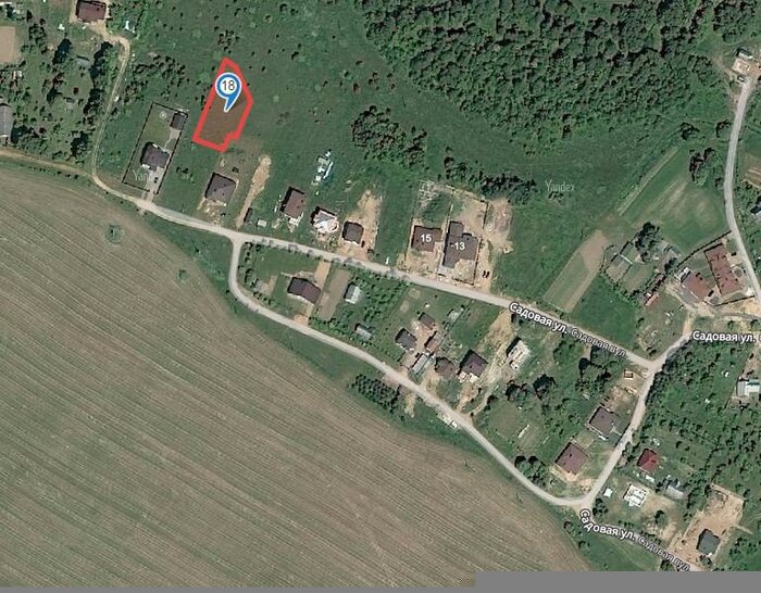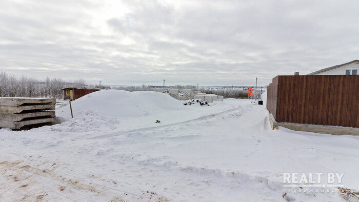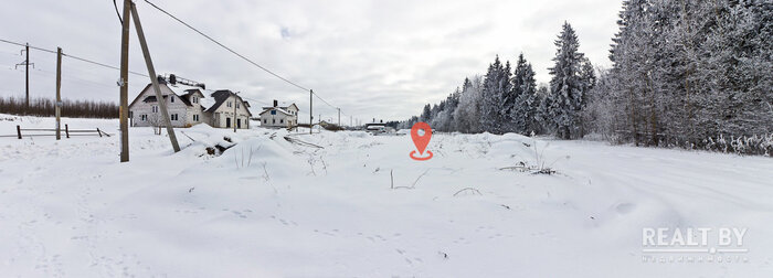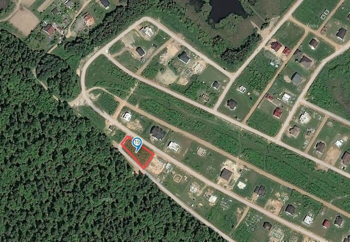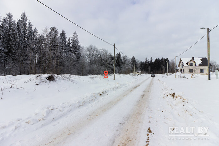 Вакантный земельный надел находится прямо у леса. Площадка холмистая, есть чувство, будто здесь выкорчевывали деревья или сгружали землю при прокладке газа. К слову, хоть коммуникаций и не заявлено, у соседей уже имеются электричество и газ. Подъезд — накатанная дорога. В квартале ведется активное строительство. Жилых домов поблизости не видно.