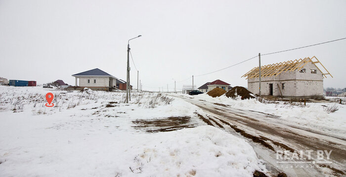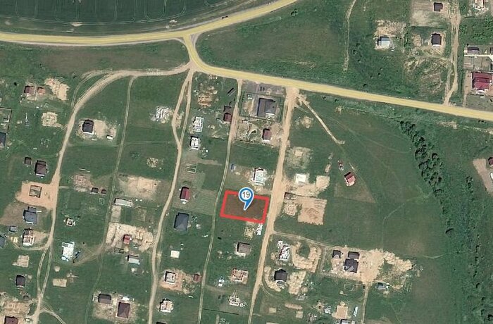 Участок № 63 выделен в квартале новой коттеджной застройки. Все соседи активно строятся. Территория земельного надела ровная, удобная для возведения дома. Из коммуникаций заявлены электричество и газ. Практически до участка ведет хорошая асфальтированная трасса, лишь последние 200 метров придется проехать по накатанной дороге.