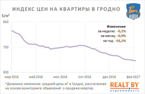 Мониторинг цен предложения квартир в Гродно за 27 февраля — 6 марта 2017 года