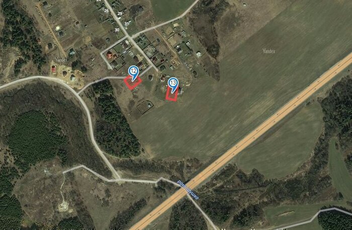 В деревне Буденного выделено два лота. Земельный надел, участвующий в торгах под № 12, ранее уже использовался. Об этом свидетельствует недостроенный фундамент. Соседи строятся, подъезда практически нет, рядом виднеется трасса, поэтому на участке довольно шумно. Из коммуникаций заявлены электричество и газ.