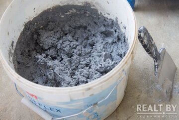 9795 7Мы не ошиблись цифрой, речь и правда о $ 6 за 30-килограммовый пакет необходимого нам материала. Отделочник компании «Мастер сервис» Петр Карпович поделился секретом, как стильно задекорировать стены под бетон, потратив совсем немного денег.
