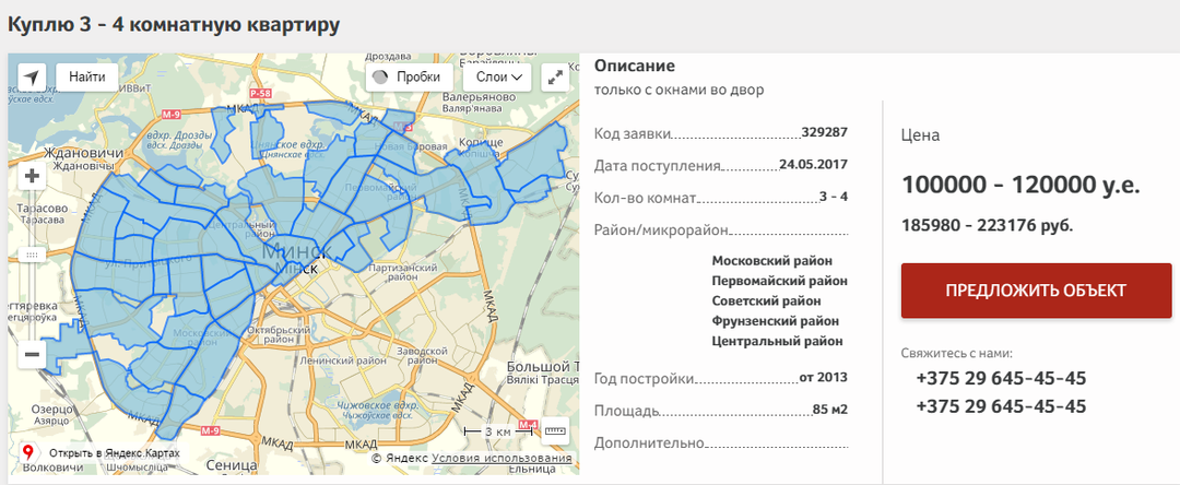 Ежедневно в «ТВОЯ СТОЛИЦА∙АГЕНТСТВО НЕДВИЖИМОСТИ» поступает более 100 обращений минчан и жителей разных регионов Беларуси, иностранных граждан, готовых приобрести недвижимость в Минске или пригороде. Все заявки фиксируются в базе и внимательно обрабатываются специалистами. Потенциальному покупателю задаются дополнительные вопросы, а каждые 14 дней уточняется актуальность обращения.