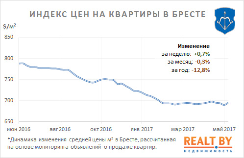 Мониторинг цен предложения квартир в Бресте за 29 мая — 5 июня 2017 года