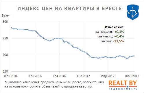 Мониторинг цен предложения квартир в Бресте за 12−19 июня 2017 года