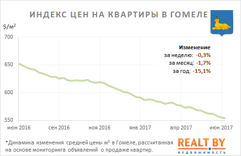 Мониторинг цен предложения квартир в Гомеле за 12−19 июня 2017 года