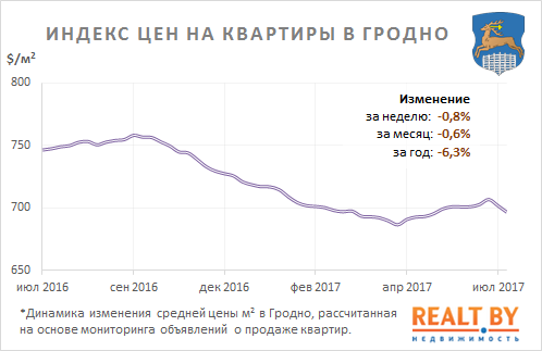 Мониторинг цен предложения квартир в Гродно за 3−10 июля 2017 года