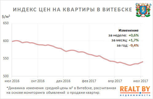 Мониторинг цен предложения квартир в Витебске за 10−17 июля 2017 года