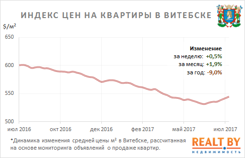 Мониторинг цен предложения квартир в Витебске за 17−24 июля 2017 года