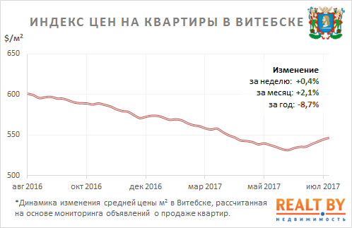 Мониторинг цен предложения квартир в Витебске за 24−31 июля 2017 года