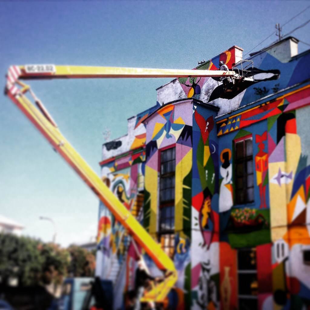 1367 2Участник фестиваля Vulica Brasil Диего Дедаблио из-за погодных условий не смог вовремя завершить свой мурал на фасаде культурного центра «Корпус», и ему пришлось остаться в Минске сверх отведенных сроков.