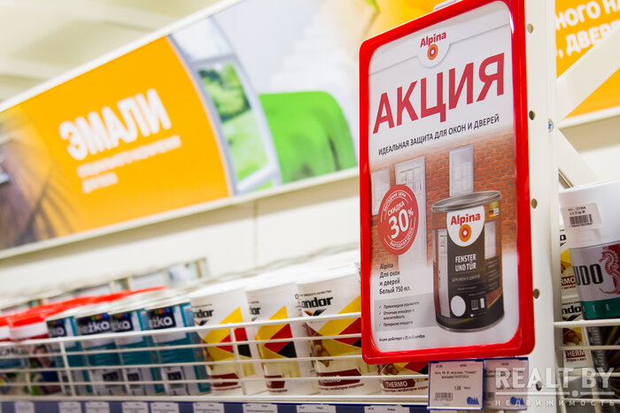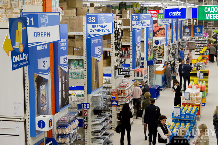 Новый гипермаркет удивляет не только размерами, но и начинкой. Ассортимент товара порядка 70 тыс. наименований — это отделочные материалы, садовая техника и инструменты, товары для ландшафтного дизайна и многое другое. Любой товар можно приобрести как в торговом зале, так и на сайте OMA.by.